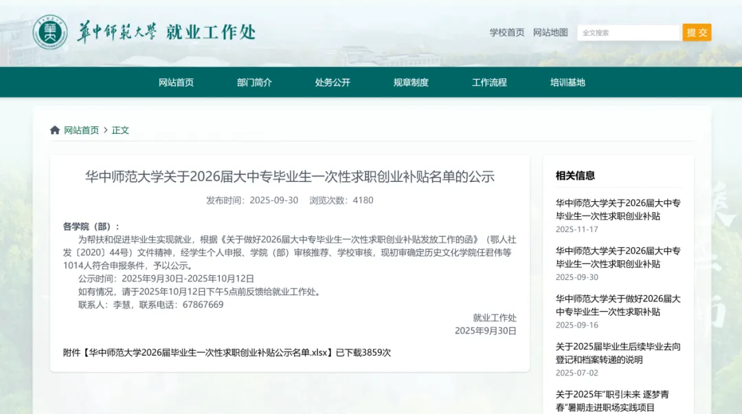 根据《关于做好2026届大中专毕业生一次性求职创业补贴发放工作的函》(鄂人社发〔2020〕44号)文件精神,经学生个人申报、学院(部)审核推荐、学校审核公示。学院最终确定87名(含第一轮和第二轮)2026届毕业生获得资助。